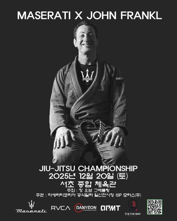 다가오는 2025년 12월 20일 토요일, 서초종합체육관은 다시 한번 주짓수인들의 뜨거운 함성으로 가득 찰 예정이다. 럭셔리 스포츠카 브랜드 마세라티와 한국 주짓수의 살아있는 역사, 존 프랭클 교수의 이름이 함께하는 ‘Maserati × John Frankl Jiu-Jitsu Championship’이 성대한 막을 올리기 때문이다. 킹 오브 그래플링의 주최와 마세라티코리아 공식 딜러인 ISP 모터스(주) 일산전시장의 주관 아래, 본 대회는 단순한 경합을 넘어 주짓수 정신을 공유하는 화합의 장이 될 것으로 기대를 모으고 있다.