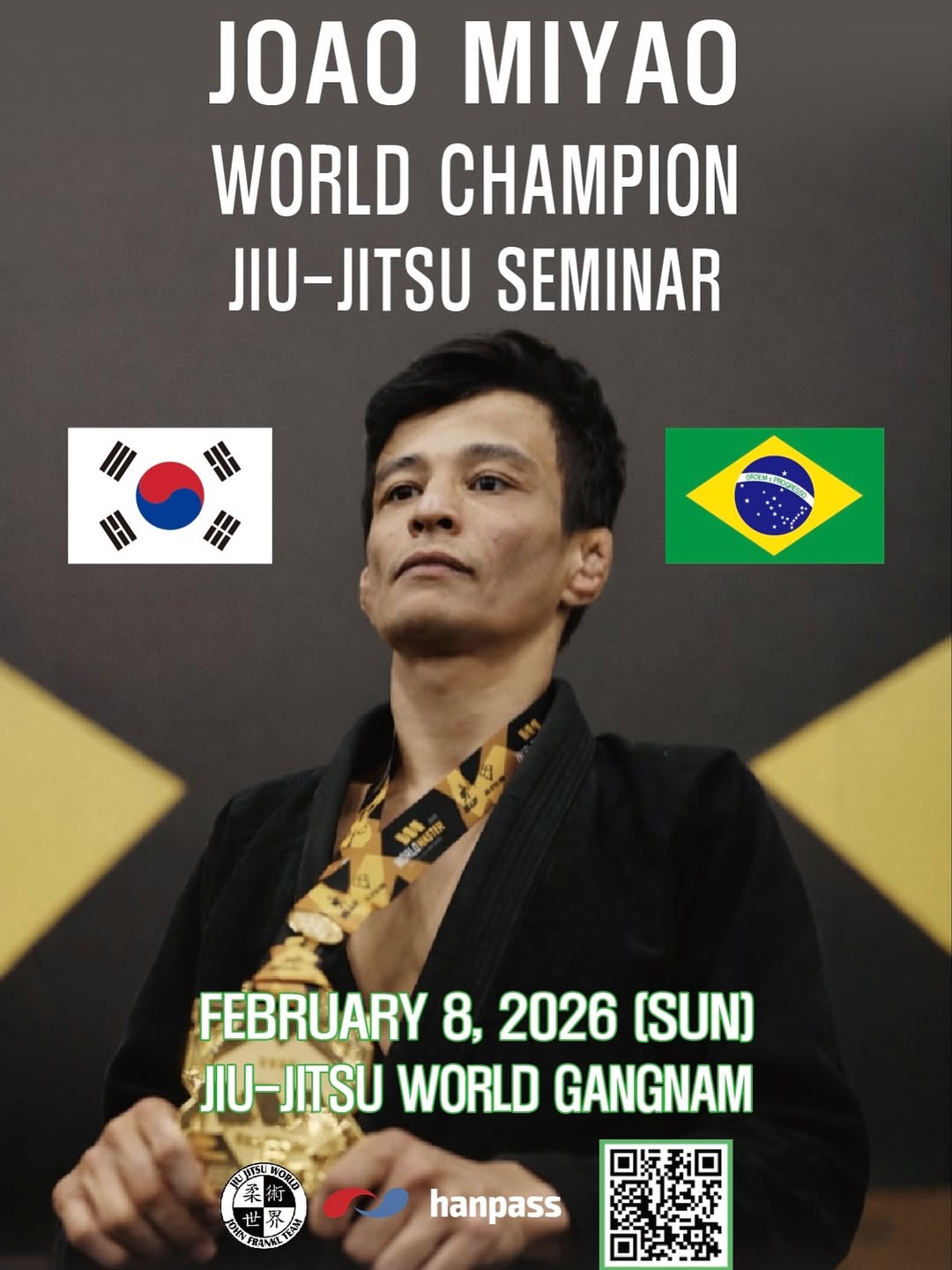 세계 최정상급 베림보로 스페셜리스트 조아오 미야오(JOAO MIYAO)의 주짓수 세미나가 2026년 2월, 서울 강남에서 열린다.