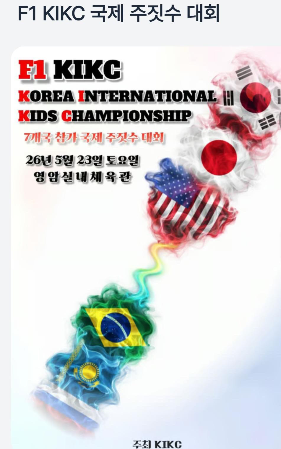 ‘F1 KIKC (Korea International Kids Championship)’는 오는 5월 23일(토), 전라남도 영암실내체육관에서 열리며, 약 7개국의 해외 선수단이 참가할 예정이다.
