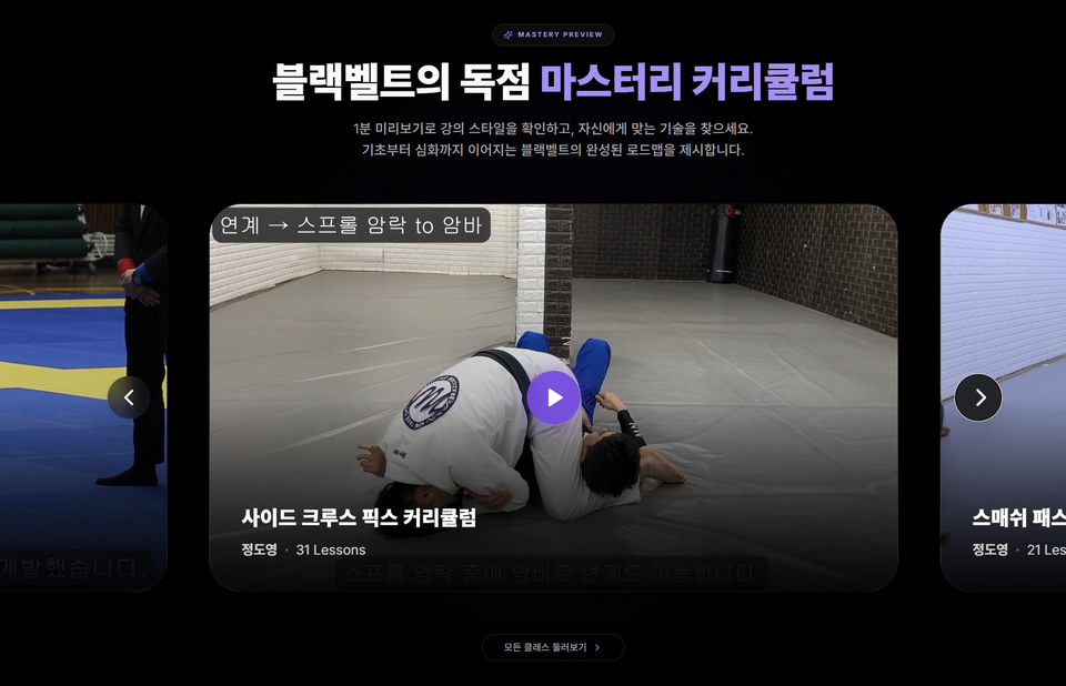 기존의 온라인 주짓수 교육 플랫폼은 한 명의 선수 혹은 하나의 시스템을 개별 판매하는 구조가 일반적이다. 가격 역시 적게는 5만 원에서 많게는 150만 원에 이른다.