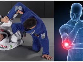 주짓수에서 흔히 일어나는 팔꿈치 부상.